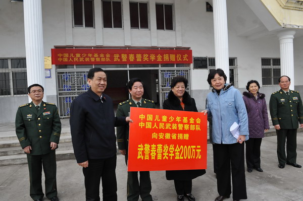 3月2日,武警春蕾奖学金捐赠活动在“管子故里”安徽省阜阳市颍上县举行。第十一届全国人大常委会副委员长、全国妇联原主席、中国儿童少年基金会理事长陈至立出席捐赠活动。全国妇联党组书记、副主席、书记处第一书记宋秀岩出席并讲话。武警部队副政委张瑞清出席活动。