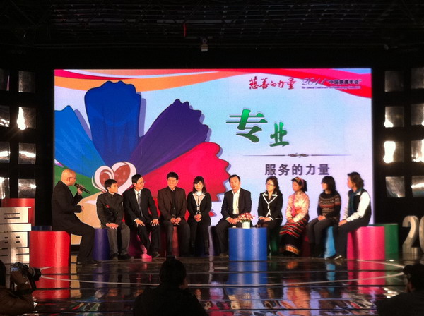 中国儿童少年基金会秘书长陈晓霞出席慈善年会,并带领曾受“春蕾计划”资助现北京优秀大学生村官史丽丽和春蕾女童四川省阿坝州小金县藏族学生杨兰,共同畅谈了参与和受助“春蕾计划”的亲自感受。