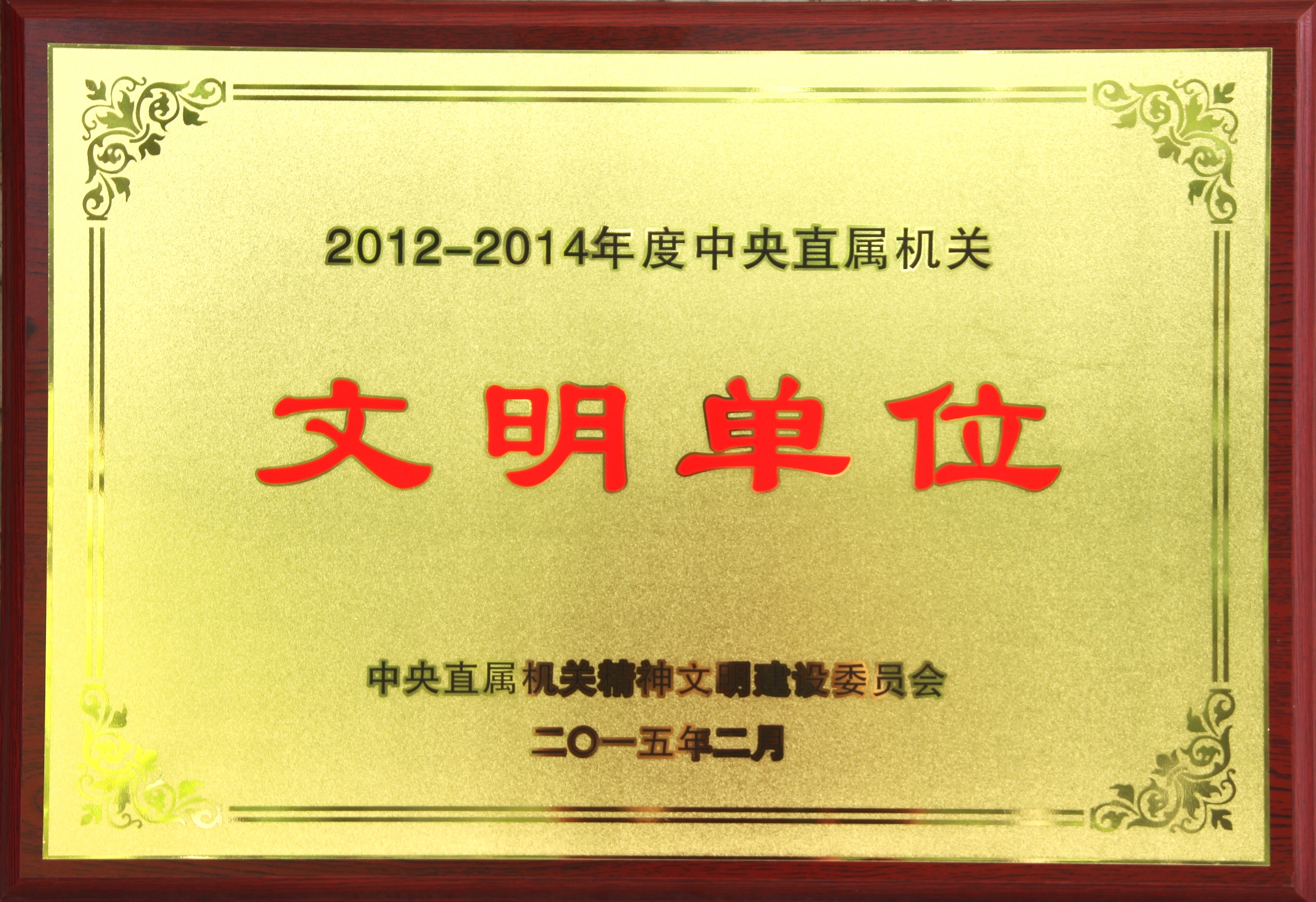 荣获中央直属机关精神文明建设委员会授予的“2012-2014年度中央直属机关文明单位”